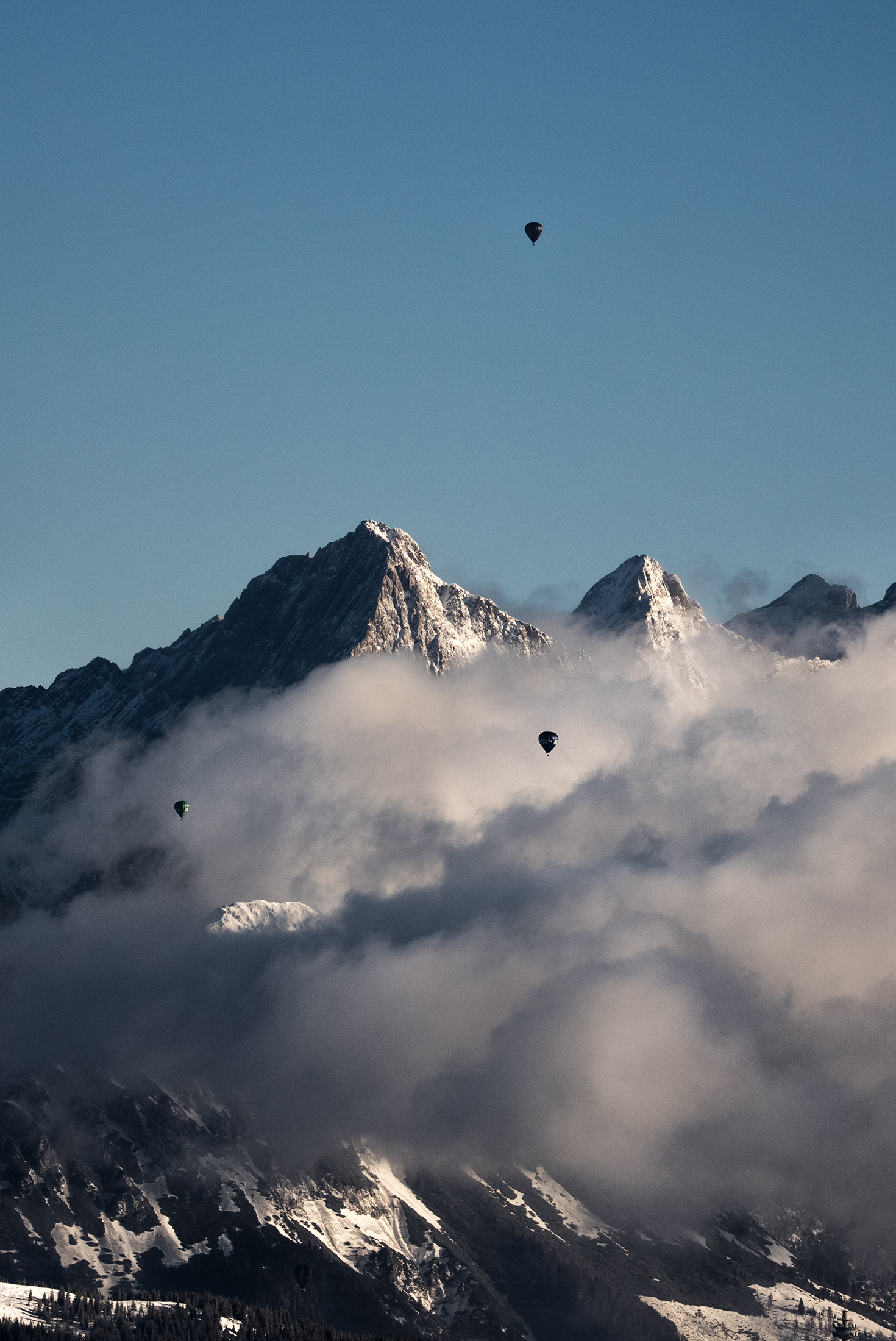Balony pojawiły się nagle – jakby ktoś umieścił je w kadrze specjalnie. Przez chwilę wszystko ułożyło się idealnie: światło, chmury i przestrzeń.